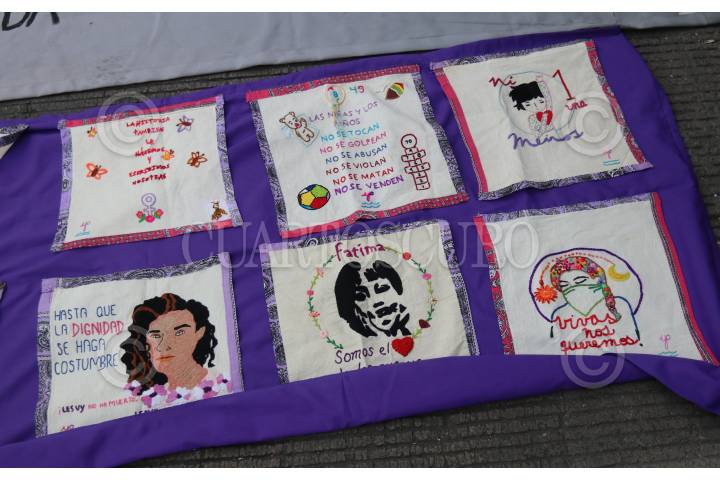 CIUDAD DE MÉXICO, 14SEPTIEMBRE2022.- Mujeres de colectivas feministas desde temprana hora y hasta el anochecer realizaron una "antigrita" en modo de protestas por el nacionalismo que se vive en fechas patrias mientras 11 mujeres al día son asesinadas. Las manifestantes colocaron sus puestos de venta solidaria y trueque también abrieron micrófono para hablar sobre las violencias y denunciar a sus agresores, terminando por colocar ofrenda en la antimonumenta. FOTO: ANDREA MURCIA /CUARTOSCURO.COM