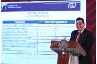 CIUDAD DE MÉXICO, 15SEPTIEMBRE2022.- Andrés Manuel López Obrador, presidente de México acompañado de Rosa Icela Rodríguez Velázquez, secretaria de Seguridad y Protección Ciudadana; Ricardo Mejía Berdeja, subsecretario de Seguridad Pública de la Secretaría de Seguridad y Protección Ciudadana (SSPC) y Carlos Antonio Alpizar Salazar, Secretario General de la Presidencia del Consejo de la Judicatura Federal durante conferencia matutina con tema de Seguridad que se lleva a cabo en Palacio Nacional. FOTO: ANDREA MURCIA /CUARTOSCURO.COM
