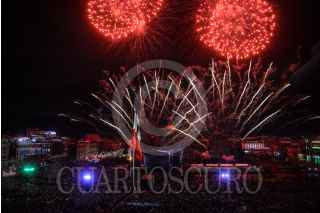 CIUDAD DE MÉXICO, 15SEPTIEMBRE2022.- Miles de personas se dieron cita en la plancha del zócalo capitalino para la conmemoración del 212 aniversario de la Independencia de México, luego de dos años de restricción de aglomeraciones derivadas de la pandemia por covid-19. La festividad está contemplada con el concierto de Los Tigres de Norte, y el grito de Independencia por parte de Andrés Manuel López Obrador, presidente de México. FOTO: MARIO JASSO/CUARTOSCURO.COM