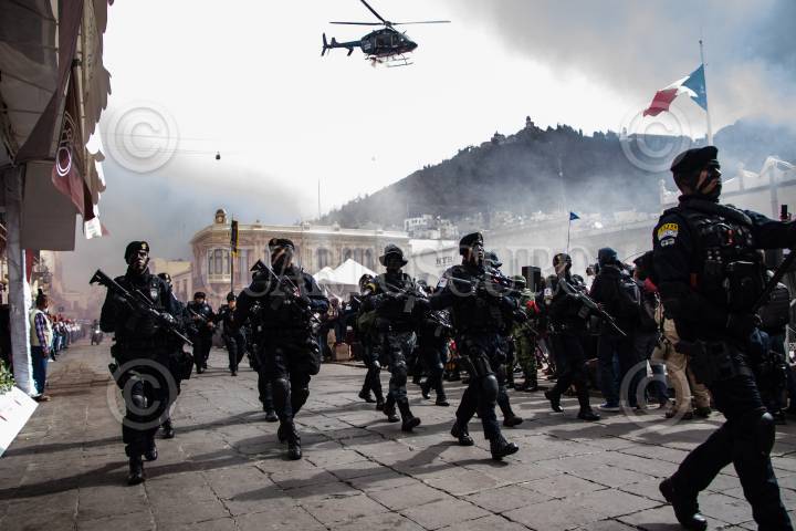 ZACATECAS, ZACATECAS, 16SEPTIEMBRE2022.- Esta mañana se se presentó el tradicional desfile cívico-militar como parte de la conmemoración de la Independencia de México. David Monreal Ávila, gobernador del estado y Humberto Pedroza Salazar, comandante de la 11ª zona militar, presidieron la conmemoración que se realizó sobre la avenida Hidalgo. FOTO: ADOLFO VLADIMIR /CUARTOSCURO.COM