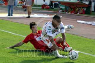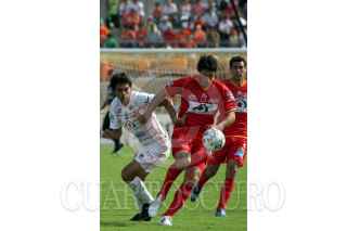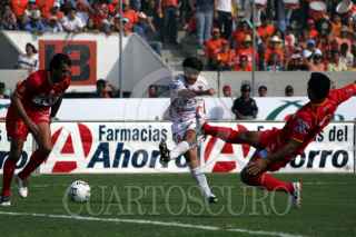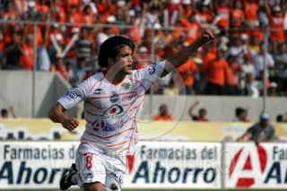 TUXTLA GUTIERREZ, CHIAPAS, 10FEBRERO2007.- El mediocampista de los Jaguares de Chiapas; Javier Camposa (8) festeja su gol en el encuentro disputado contra los Tecos de UAG. FOTO: MARCO POLO GUZMÁN HERNÁNDEZ/CUARTOSCURO.COM