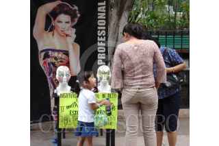 CHILPANCINGO GUERRERO 10FEBRERO2007.- Una señora acompañada de su hija, observan el stan instalado por una escuela de belleza en el Zócalo de la capital del estado. FOTO: OSCAR ALVARADO/CUARTOSCURO.COM