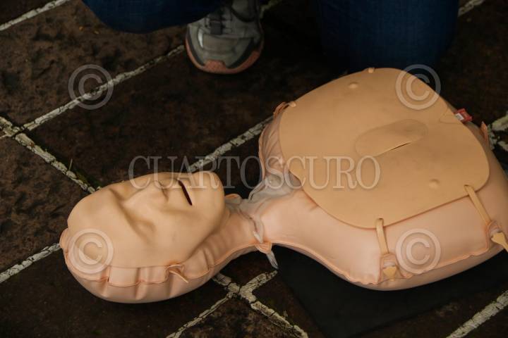 CIUDAD DE MÉXICO.18SEPTIEMBRE2022.- Platicas y talleres de primeros auxilios impartieron integrantes de la Cruz Roja en la entrada principal del bosque de Chapultepec. FOTO: VICTORIA VALTIERRA/CUARTOSCURO.COM
