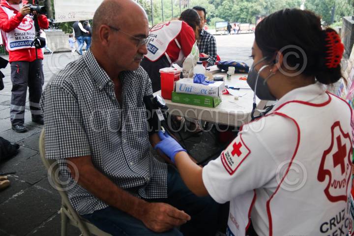 CIUDAD DE MÉXICO.18SEPTIEMBRE2022.- Platicas y talleres de primeros auxilios impartieron integrantes de la Cruz Roja en la entrada principal del bosque de Chapultepec. FOTO: VICTORIA VALTIERRA/CUARTOSCURO.COM