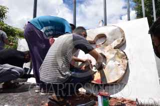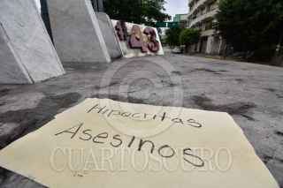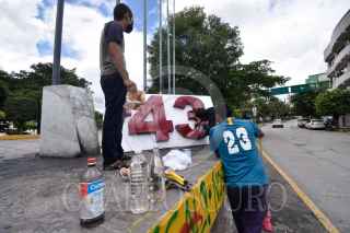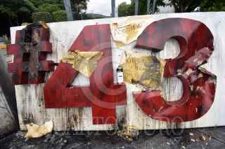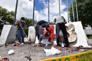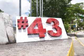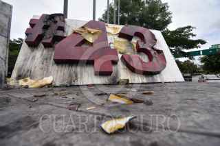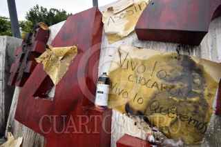 CHILPANCINGO, GUERRERO, 18SEPTIEMBRE2022.- A través de redes sociales, difunden videos donde personas prenden fuego al ‘Anti monumento de los 43’ en Chilpancingo, trasciende que se trata de familiares de Jacinto Durante las primeras horas de este domingo, en redes sociales se comenzó a difundir un par de vídeos donde se observa a dos personas, tres contando al que graba uno de los vídeos, que colocan papeles y gasolina al número 43 que está colocado en la conocida ‘glorieta de las Banderas’. En las primeras publicaciones, hechas durante la madrugada, se dijo desconocer las causas de la acción y la identidad de las personas. Horas más tarde, dichas publicaciones fueron actualizadas y se dio a conocer que una de las personas era el hijo del maestro de artes marciales Jacinto Palacios Celino, quien perdiera la vida luego de un choque con un camión que transportaba estudiantes de la Escuela Normal Rural ‘Raúl Isidro Burgos’ de Ayotzinapa, en el Nuevo Libramiento a Tixtla. FOTO: DASSAEV TÉLLEZ ADAME/CUARTOSCURO.COM