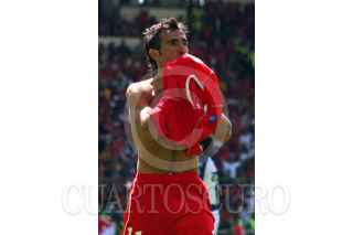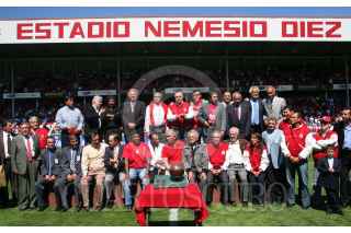 TOLUCA, ESTADO DE MÉXICO, 11FEBRERO2007.- Al medio tiempo, varios ex jugadores y directivos de los Diablos Rojos del Toluca, salieron a la cancha para celebrar los 90 años del club. FOTO: ISAAC ESQUIVEL/CUARTOSCURO.COM