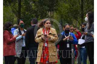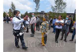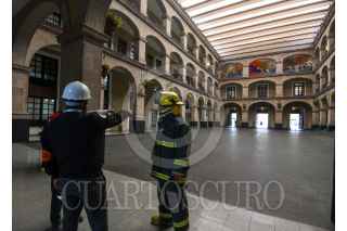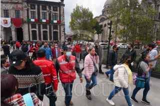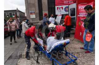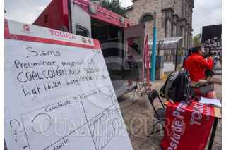 TOLUCA, ESTADO DE MÉXICO, 19SEPTIEMBRE2022.- Media hora después de haber culminado el simulacro de sismo en la ciudad de Toluca se registró un movimiento con magnitud 7.4 con epicentro al sur de Coalcoman, Michoacán, ciudadanos de Toluca evacuaron edificios, oficinas y comercios de la zona centro para colocarse en un lugar seguro mientras se desarrollaba el sismo, las brigadas de PC realizaron la inspección de edificios para descartar algún peligro. Algunas personas trataron de localizar a sus familiares para saber que se encontraban bien. Dos personas fueron atendidas por crisis nerviosa. FOTO: CRISANTA ESPINOSA AGUILAR /CUARTOSCURO.COM