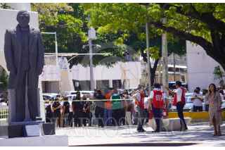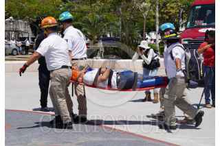 CANCÚN, QUINTANA ROO, 19SEPTIEMBRE2022.- Se llevó a cabo un ejercicio de Protección Civil en el Palacio Municipal, en el marco del Megasimulacro Nacional 2022, esto también para conmemorar a las víctimas de los sismos de 1985 y 2017. FOTO: ELIZABETH RUIZ/CUARTOSCURO.COM