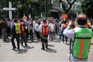 CIUDAD DE MÉXICO, 19SEPTIEMBRE2022.- Se llevó a cabo el mega simulacro en la capital del país, esto con el fin de preparar a los capitalinos ante futuros sismos. En la zona Poniente de la capital, los trabajadores de distintas empresas participaron en este ejercicio. FOTO: DANIEL AUGUSTO /CUARTOSCURO.COM