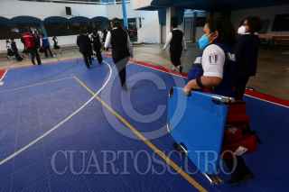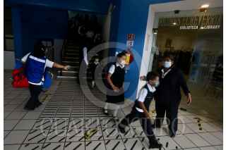 OAXACA, OAXACA, 19SEPTIEMBRE2022.- Centros educativos de la capital de Oaxaca se sumaron al Simulacro Nacional 2022. En la ciudad se activaron en punto de las 12:19 horas los 13 altoparlantes del Sistema de Alerta Sísmico (SASO), por lo que estudiantes de al menos 500 planteles educativos pusieron a prueba su capacidad de respuesta ante una emergencia real. FOTO: CAROLINA JIMÉNEZ/CUARTOSCURO.COM