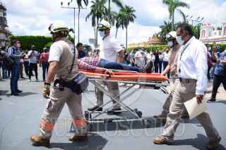 TAPACHULA, CHIAPAS, 19SEPTIEMBRE2022.- Se realizó un ejercicio de Protección Civil en el Palacio Municipal de Tapachula, en el marco del Megasimulacro Nacional 2022. Trabajadores del ayuntamiento participaron en esta actividad que busca preparar a la ciudadanía para un sismo de gran magnitud. FOTO: DAMIÁN SÁNCHEZ/CUARTOSCURO.COM