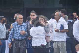 CHILPANCINGO, GUERRERO, 19SEPTIEMBRE2022.- Minutos después del simulacro nacional de sismo realizado a las 12:29 del día de este lunes, un temblor real de una magnitud preliminar 7.4 sacudió al estado de Guerrero, por lo que miles de personas evacuaron edificios públicos y privados. El epicentro se produjo alrededor de las 13:05 horas a 63 kilómetros al sur de Coalcoman, en el vecino estado de Michoacán, sin embargo, se percibió fuerte en Guerrero. En el caso de Chilpancingo, tras la activación de la alarma sísmica, en el Recinto del Poder Ejecutivo cientos de trabajadores evacuaron sus oficinas. Se notó crisis crisis nerviosa y llanto entre algunas mujeres mayores de edad. FOTO: DASSAEV TÉLLEZ ADAME/CUARTOSCURO.COM
