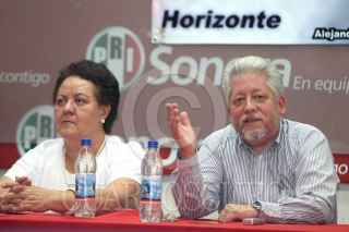 SONORA, SONORA, 11 FEBRERO 2007.- Alejandro Garate Uruchurtu, candidato a la presidencia del PRI nacional al lado de Amalia Olguin durante una gira de trabajo con representantes priistas del estado. FOTO: GUSTAVO DURAN/CUARTOSCURO.COM