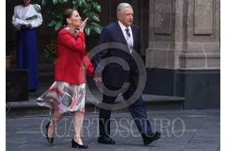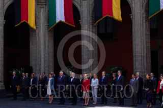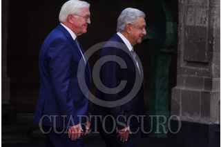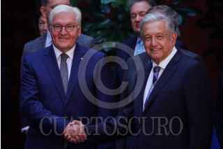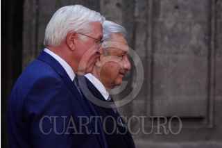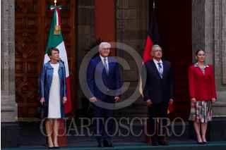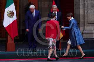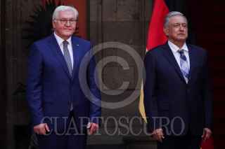 CIUDAD DE MÉXICO, 20SEPTIEMBRE2022.- Andrés Manuel López Obrador, presidente de México, en compañía de Beatriz Gutiérrez Müller, investigadora y primera dama, recibieron la visita del presidente alemán Frank-Walter Steinmeier y la jueza y esposa Elke Büdenbender en Palacio Nacional como parte de la visita oficial del mandatario alemán para sostener diálogos de cooperación. FOTO: GALO CAÑAS/CUARTOSCURO.COM