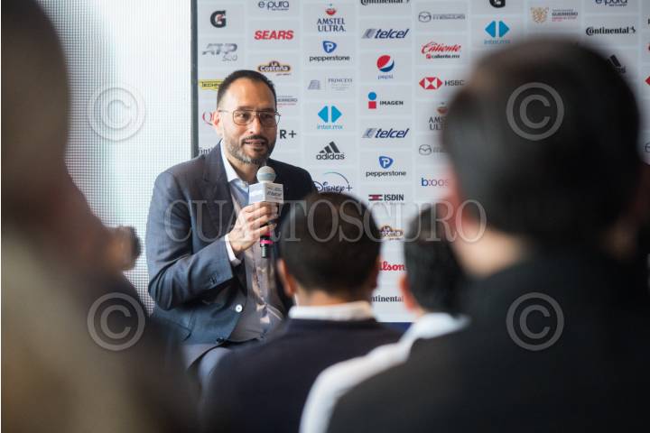 CIUDAD DE MÉXICO, 20SEPTIEMBRE2022.- Marcos Linares, subdirector de MKT Telcel; Raúl Zurutuza, director del Torneo - Abierto Mexicano TELCEL, Montserrat Munlloch; responsable de la estrategia de mercadotecnia de la Banca de Empresas de HSBC América Latina, encabezaron la presentación del "Abierto Mexicano de Tenis" que se llevará a cabo del del 27 de febrero al 4 de marzo del 2023 en Acapulco. El torneo contará con la participación de los tenistas profesionales: Carlos Alcaraz; Casper Ruud, y Stéfanos Tsisipás. FOTO: MARIO JASSO/CUARTOSCURO.COM