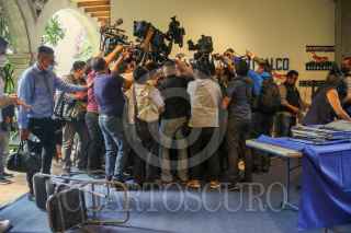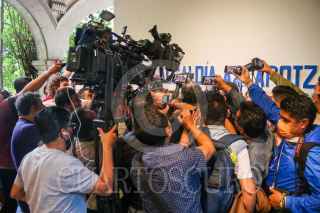 CIUDAD DE MÉXICO. 20SEPTIEMBRE2022.- José Joel, acompañado de autoridades de la alcaldía Azcapotzalco de n conferencia de prensa, hablaron sobre el homenaje al príncipe de la canción el próximo mes. Al término de la plática con medios lo siguieron cuestionando sobre su pleitos con su hermana Marisol. FOTO: VICTORIA VALTIERRA/CUARTOSCURO.COM