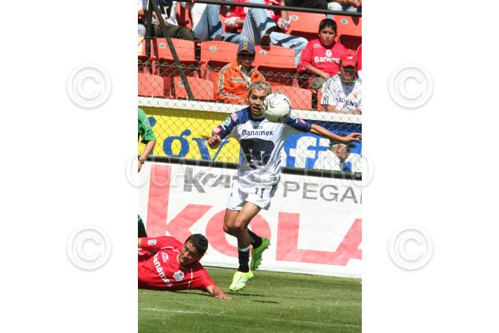 TOLUCA ESTADO DE MÉXICO 11FEBRERO2007.- Con empate a 2 goles concluyo el encuentro entre los Pumas de la UNAM contra los Diablos Rojos del Toluca en el estadio Nemesio Diez, en imagen Jose Luis Lopez (11) jugador de los Pumas se lleva el balon. FOTO: CARLOS TISCHLER/CUARTOSCURO.COM