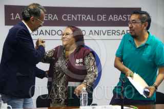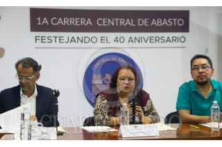 CIUDAD DE. 21SEPTIEMBRE2022.- Javier Hidalgo, Marisela Villegas y Javier Peralta en la conferencia de anuncio de la Carrera por el 40 aniversario de la Central de Abasto de la Ciudad de México. Se llevará acabó el próximo 16 de Octubre y es abierta para todo el que quiera participar. FOTO: VICTORIA VALTIERRA/CUARTOSCURO.COM