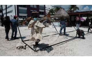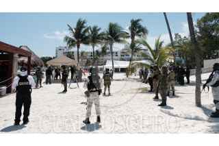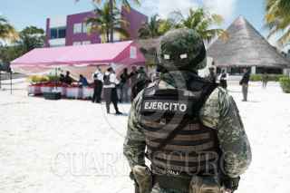 CANCÚN, QUINTANA ROO, 21SEPTIEMBRE2022.- Operativo conjunto del Ejército, Marina, Guardia Nacional y Policía Quintana Roo, para retirar a vendedores ambulantes y prestadores de servicios turísticos, como masajistas, vendedores de tour, entre otros, en la playa del Hotel Temptation de la Zona Hotelera. El operativo es parte de las acciones permanentes para liberar las playas de vendedores ambulantes. Estructuras de madera y de otros materiales fueron retiradas. FOTO: ELIZABETH RUIZ/CUARTOSCURO.COM