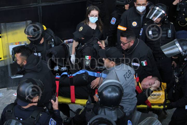 COUDAD DE MÉXICO, 22SEPTIEMBRE2022.- Padres de los 43 estudiantes de la Escuela Rural “Isidro Burgos” en Ayotzinapa, Guerrero, protestaron para exigir justicia a 8 años de su desaparición forzada afuera de las instalaciones de la Fiscalía General de la República. Durante el mitin 7 elementos de la policía fueron lesionados a causa de bombas molotov. FOTO: GRACIELA LÓPEZ /CUARTOSCURO.COM