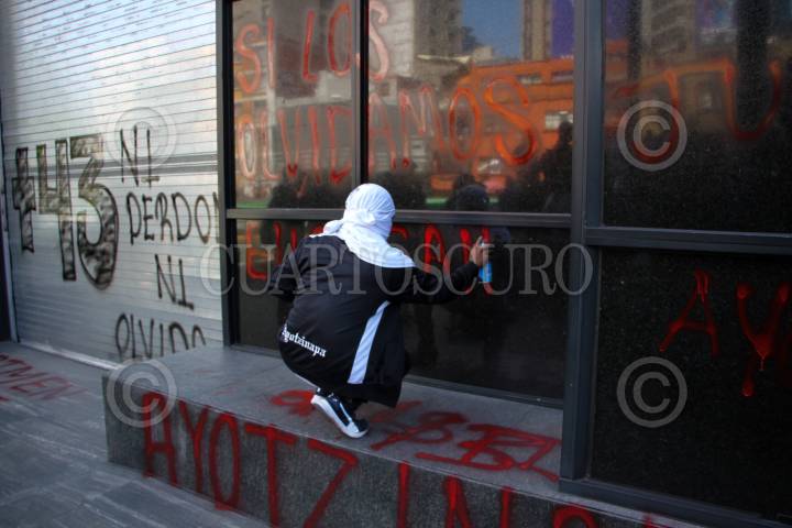 COUDAD DE MÉXICO, 22SEPTIEMBRE2022.- Padres de los 43 estudiantes de la Escuela Rural “Isidro Burgos” en Ayotzinapa, Guerrero, protestaron para exigir justicia a 8 años de su desaparición forzada afuera de las instalaciones de la Fiscalía General de la República. Durante el mitin 7 elementos de la policía fueron lesionados a causa de bombas molotov. FOTO: GRACIELA LÓPEZ /CUARTOSCURO.COM