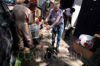 CIUDAD DE MÉXICO, 22 SEPTIEMBRE2022.- Durante el desalojo de un predio, ubicado en la colonia Observatorio, más de un treintena de perros fueron encontrados en condiciones deplorables e insalubres. Entre excrementos, gusanos, cucarachas e incluso resto de los mismo animales que habían sido comidos por los otros canes fue que se les liberó. Los vecinos comentaron que la situación tiene desde 2014 y a pesar de las múltiples denuncias a las autoridades, en ningún momento hubo respuesta o acción. Asimismo, no hubo detenidos por el delito de maltrato ya que sólo existía la orden de desalojo. Por otro lado, habitantes de un predio ubicado en General Victoriano Zepede 38, en donde también habita una de las responsables, denunciaron que ahí se encuentran hacinados otros 15 canes en condiciones similares. Autoridades de la alcaldía Miguel Hidalgo, vecinos y Brigada de Vigilancia Animal fueron quienes se hicieron responsables del traslado de los caninos. FOTO: GALO CAÑAS/CUARTOSCURO.COM