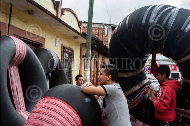 SAN CRISTÓBAL DE LAS CASAS, CHIAPAS, 22SEPTIEMBRE2022.- Después de suspender por dos años consecutivos el desfile debido a la pandemia por Covid 19, el barrio de La Merced dió el anuncio de que celebrará su tradicional fiesta en dedicada a la virgen de La Merced. Los panzudos vestidos con grandes telas de colores y máscaras escalofriantes salen nuevamente a las calles acompañando a la virgen y sus carros alegóricos por las principales calles de la ciudad, siendo este el inicio de la gran fiesta que se llevará a cabo hasta el 24 de septiembre. FOTO: ISABEL MATEOS /CUARTOSCURO.COM