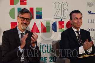 CIUDAD DE MÉXICO, 22SEPTIEMBRE2022.- Cyril Anis, delgado general de la Federación de las Alianzas Francesas de México; Jean-Pierre Asvazadourian, embajador de Francia en México; Alejandro Ramírez, director general de Cinépolis, y Leopoldo Jiménez, director general Nueva Era Films, encabezaron la conferencia de prensa para anunciar la vigésimo sexta edición del Tour de Cine Francés en nuestro país. La muestra contará con siete películas que se exhibirán en más de 150 salas a lo largo de la República Mexicana. FOTO: GALO CAÑAS/CUARTOSCURO.COM