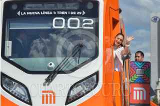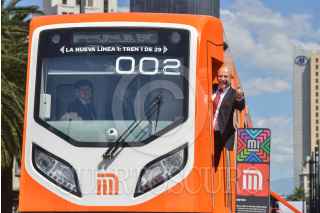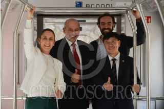 CIUDAD DE MÉXICO, 22SEPTIEMBRE2022.- Claudia Sheinbaum, jefa de Gobierno; Guillermo Calderón Aguilera, director general del Sistema de Transporte Colectivo Metro; Fu Chengjun, presidente de CRRC y Andrés Lajous, secretario de Movilidad, encabezaron la presentación del nuevo tren que será incorporado a la nueva Línea 1 del Metro, e inauguración de exposición Movilidad Integrada sobre avenida Revolución. FOTO: MARIO JASSO/CUARTOSCURO.COM