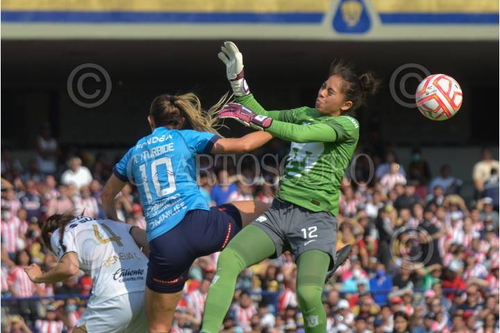 CIUDAD DE MÉXICO, 22SEPTIEMBRE2022.- El equipo femenil de los Pumas de la UNAM se enfrenta a su similar de las Chivas del Guadalajara como parte de la jornada 13 de la Liga Apertura 2022 de la Liga BBVA MX Femenil. Marcador parcial: Pumas (1) - Guadalajara (0). FOTO: MARIO JASSO/CUARTOSCURO.COM