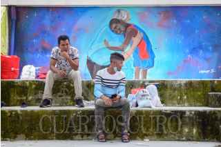 TAPACHULA, CHIAPAS, 23SEPTIEMBRE2022.- La Iglesia Católica y organizaciones Pro-migrante celebran la semana del migrante con una jornada a nivel nacional. Las organizaciones y la iglesia de San Sebastián les otorgó alimentos, asistencia jurídica y calzado. Al lugar acudieron un aproximado de 200 a 300 personas de las distintas nacionalidades. Quienes se encuentran en un proceso abierto de solicitud de condición de refugiados y cada vez ellos lo ven más complicado debido al proceso administrativos. FOTO: DAMIÁN SÁNCHEZ/CUARTOSCURO.COM