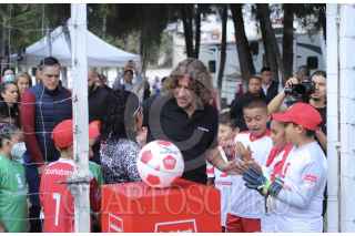 TLANEPANTLA DE BAZ, ESTADO DE MEXICO, 24SEPTIEMBRE2022.- El exfutbolista español Carles Puyol visitó Tlanepantla en el Estado de México para el lanzamiento de la plataforma Scotiabank Fútbol Club, que pretende brindar oportunidades a la niñez a través del deporte. FOTO: EDGAR NEGRETE/CUARTOSCURO.COM