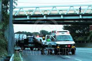 CUERNAVACA, MORELOS, 25SEPTIEMBRE2022.- Un amanecer violento se vivió este domingo en Cuernavaca, Morelos. En dos hechos distintos, pero casi de forma simultánea, fueron localizados los cadáveres de una mujer y un hombre. El primer reporte que recibió la policía ocurrió a las 06:00 horas, y en él se advertía sobre el cuerpo sin vida de una joven en la calle Antiguo Camino a Tepoztlán, de la colonia Cerritos de García. La víctima tenía aproximadamente 20 años de edad y vestía pantalón de mezclilla azul, blusa azul claro y zapatos de plataforma negro; a simple vista se le veía un disparo de arma de fuego en la cabeza. Autoridades adelantaron que el hecho se deriva de un ataque contra tres jóvenes en el que las otras dos resultaron heridas y trasladadas a un hospital para su atención. Sólo unos minutos después se reportó que, sobre el acotamiento del kilómetro 93+250 del Paso Exprés, en los carriles que van a la Ciudad de México, había el cadáver de un hombre joven amarrado de pies y manos, con signos de tortura y con una lona roja encima con un mensaje; extraoficialmente se supo que, en este segundo caso, la policía de Cuernavaca no atendió de manera inmediata, bajo la excusa de que el tramo es responsabilidad de la Guardia Nacional. El cadáver estuvo expuesto por mucho tiempo ante los cientos de automovilistas que circulaban por la importante vía de comunicación. FOTO: MARGARITO PÉREZ RETANA / CUARTOSCURO.COM