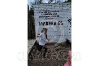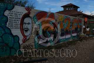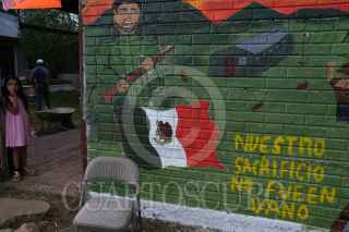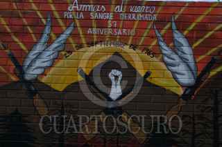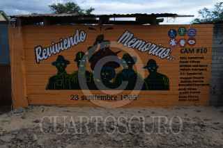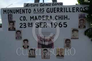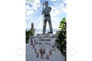 MADERA, CHIHUAHUA. 26SEPTIEMBRE2022.- Se construyó un monumento al líder de los guerilleros que asaltaron el cuartel de Madera el 23 de septiembre de 1965 en el que fueron asesinados 13 guerrilleros, quienes fueron enterrados en una fosa común. Este memorial en el que aparece la figura de Arturo Gámiz García en la avenida principal de la ciudad, se hizo con el apoyo de los colectivos Morena Municipal y Fracciones Democráticas del SNTE Secc. 8. y familiares de los guerrilleros asesinados. Se lanzaron una convocatoria entre las primarias y secundarias para el mejor mural donde plasmaban el acontecimiento que vivió este pueblo el 23 de septiembre de 1965. También se inauguró con la presentación de grupos musicales locales y obras de teatro. FOTOS: PEDRO VALTIERRA/CUARTOSCURO.COM