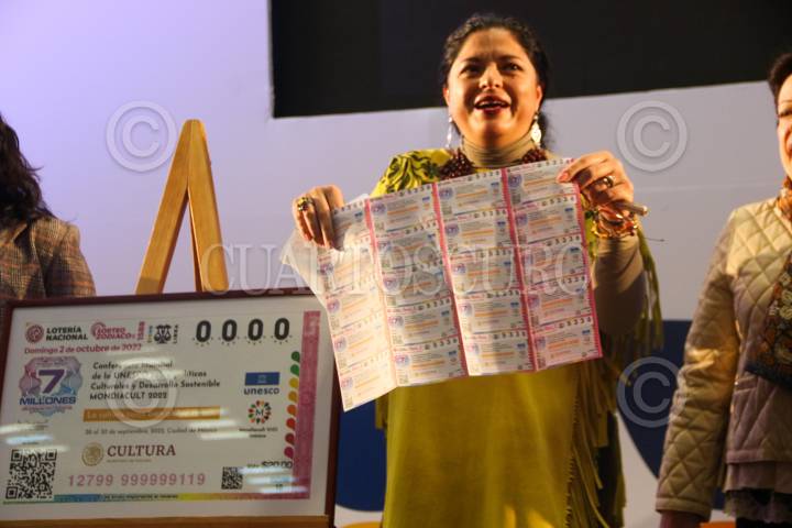 CIUDAD DE MÉXICO. 26SEPTIEMBRE2022.- “Develación del billete de Lotería conmemorativo de Mondiacult 2022”. Lo encabezó Alejandra Fraustro y se llevó acabo en el salón Adolfo López Mateos del complejo cultural Los Pinos. FOTO: VICTORIA VALTIERRA/CUARTOSCURO.COM