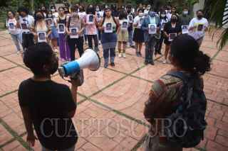 MÉRIDA, YUCATÁN, 26SEPTIEMBRE2022.- Hoy por la mañana alumno de la Facultad de Ciencias Antropológicas de la Universidad Autónoma de Yucatán, UADY, encabezados por El frente independiente de resistencia estudiantil, realizaron un pase de lista de los estudiantes normalistas de Ayotzinapa y un minuto de silencio para conmemorar su desaparición forzada a manos del Estado de Guerrero hace 8 años. FOTO: MARTÍN ZETINA/CUARTOSCURO.COM