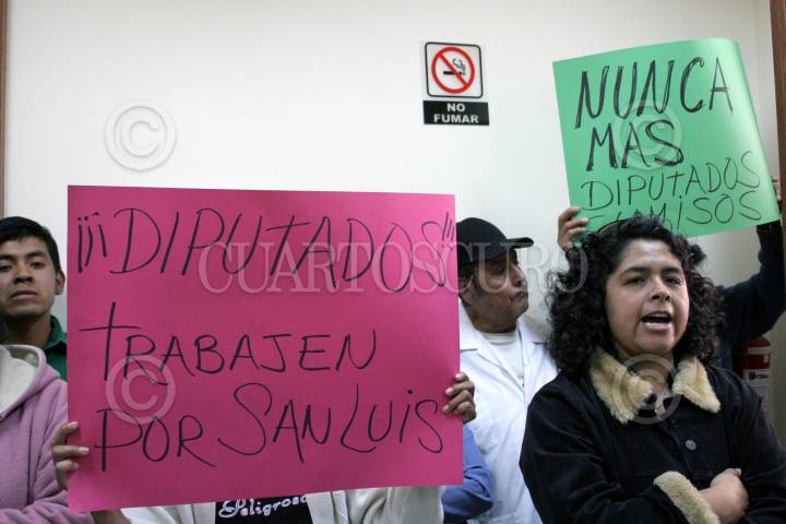 SAN LUIS POTOSI, SAN LUIS POTOSI 12FEBRERO.- Varias organizaciones y la sociedad civil protestaron en el congreso del estado de San Luis Potosi para exigir a los diputados la salida de Minera San Xavier del Cerro de San Pedro. FOTO: AARON CADENA OVALLE/CUARTOSCURO.COM