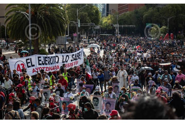 CIUDAD DE MÉXICO, 26SEPTIEMBRE2022.- Encabezada por Padres y normalistas se realizo protesta a 8 años de la desaparición de normalistas de Ayotzinapa, actualmente se ha conocido la información de que el ejército tuvo que ver con los hechos ocurridos el 26 de septiembre de 2014. FOTO: ANDREA MURCIA /CUARTOSCURO.COM