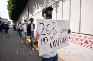 CHILPANCINGO, GUERRERO, 26SEPTIEMBRE2022.- Normalistas que integran el Frente Unido de Normales Públicas del Estado de Guerrero (FUNPEG), marcharon en Chilpancingo dentro del marco de la conmemoración por el octavo aniversario de la desaparición de 43 estudiantes de Ayotzinapa la noche y madrugada del 26 y 27 de septiembre de 2014. Normalistas que integran el Frente Unido de Normales Públicas del Estado de Guerrero (FUNPEG), marcharon en Chilpancingo dentro del marco de la conmemoración por el octavo aniversario de la desaparición de 43 estudiantes de Ayotzinapa la noche y madrugada del 26 y 27 de septiembre de 2014. Alrededor de las 9 de la mañana, más 500 estudiantes de las ocho normales públicas urbanas de Guerrero, llegaron en autobuses al Hemiciclo a Benito Juárez, en la glorieta de Las Banderas, en donde se concentraron para la marchar. Previo a la movilización, estudiantes prendieron veladoras y colocaron ofrendas florales en el anti monumento a los 43 con motivo del aniversario de los hechos de Iguala. FOTO: DASSAEV TÉLLEZ ADAME/CUARTOSCURO.COM