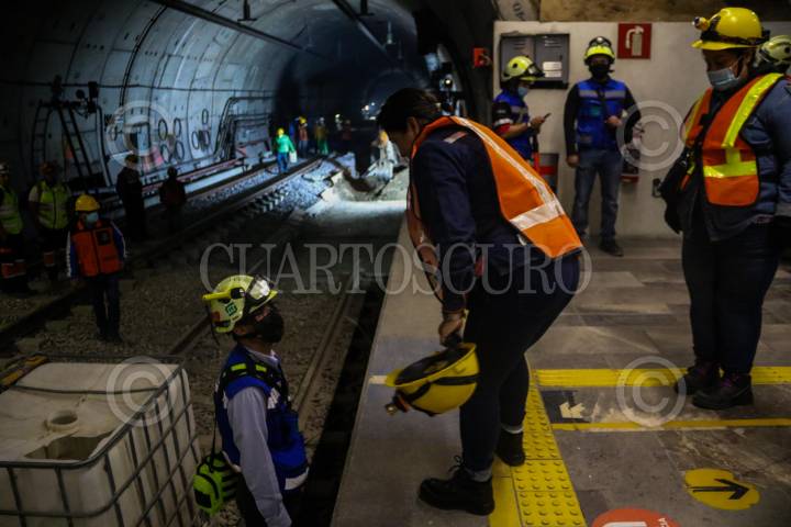 CIUDAD DE MÉXICO. 27SEPTIEMBRE2022.- Recorrido a medios de información por un tramo del túnel del la línea 12 del metro, en la estación Zapata. El director del STC Guillermo Calderón, encabezó la supervisión. FOTO: VICTORIA VALTIERRA/CUARTOSCURO.COM