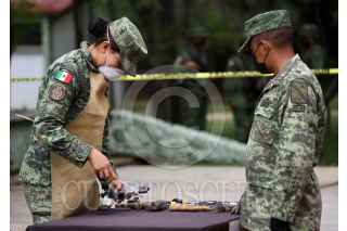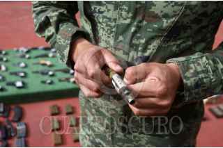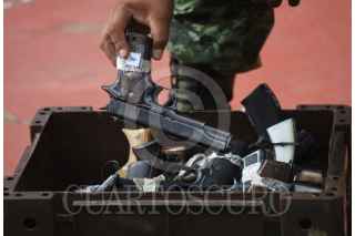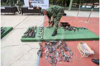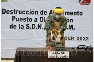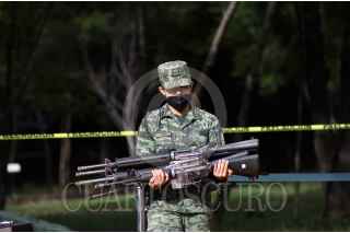 SANTA LUCÍA DEL CAMINO, OAXACA, 27SEPTIEMBRE2022.- 307 armas largas y cortas, además de 10 mil cartuchos fueron destruidos por la Secretaria de Defensa Nacional como parte del programa de Control, Destrucción y Aprovechamiento Lícito de las Armas de Fuego Decomisadas, Recicladas por Intercambio Voluntario, y Causantes de Baja de Licencias Oficiales. La destrucción se llevó a cabo en la explanada del Sexto Regimiento de Artillería de la 28ª Zona Militar. FOTO: CAROLINA JIMÉNEZ/CUARTOSCURO.COM