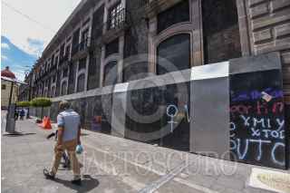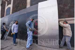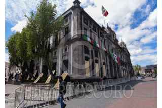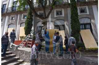 TOLUCA, ESTADO DE MÉXICO, 27SEPTIEMBRE2022.- Este martes inició la instalación de vallas en edificios como la Legislatura local, el ayuntamiento de Toluca previó a la marcha del 28S día de acción global por la despenalización del aborto, por el aborto libre y seguro. FOTO: CRISANTA ESPINOSA AGUILAR /CUARTOSCURO.COM