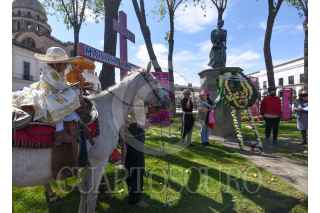TOLUCA, ESTADO DE MÉXICO, 27SEPTIEMBRE2022.- Integrantes del Colectivo Nacional de Sororidad “Leona Vicario, Madre de la Patria” realizaron un homenaje a las mujeres insurgentes al celebrarse el 201 Aniversario de la consumación de la Independencia de México, estas mujeres que lucharon esta guerra y han sido ignoradas y relegadas en el olvido durante muchos años, se instaló una ofrenda floral y pase de lista de la heroínas de la Independencia. FOTO: CRISANTA ESPINOSA AGUILAR /CUARTOSCURO.COM