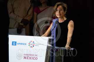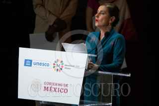 CIUDAD DE MÉXICO, 28SEPTIEMBRE2022.- Claudia Sheinbaum, jefa de gobierno de la Ciudad de México; Beatriz Gutiérrez Müller, investigadora y primera dama de México; Alejandra Frausto, secretaria de Cultura, y Audrey Azoulay, directora general de la Organización de las Naciones Unidas para la Educación, la Ciencia y la Cultura (UNESCO) encabezaron la inauguración de la conferencia mundial sobre cultura MONDIACULT 2022 en las instalaciones del Auditorio Nacional. Durante tres días, representantes de cultura mundial sostendrán mesas de diálogo en pro de políticas culturales y sustentabilidad. FOTO: GALO CAÑAS/CUARTOSCURO.COM