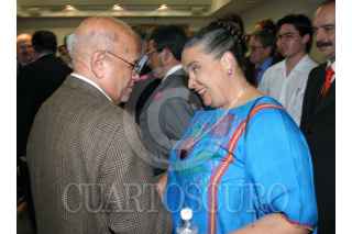 CIUDAD DE MÉXICO, 28SEPTIEMBRE2022.- Fallece el periodista veracruzano Miguel López Azuara a los 88 años. Lo confirmó su hija Constanza a través de redes sociales. Azuara fue reportero, columnista político, editor y subdirector editorial en diversos medios nacionales como El Universal, La Jornada, Excélsior y Proceso. En la fotos Miguel López Azuara, Beatriz Paredes, Humberto Galindo y Rafael Cardona durante la presentación de la revista de corte político Examen, en la Torre Mayor el 16 de octubre de 2007. FOTO: MOISÉS PABLO/CUARTOSCURO.COM