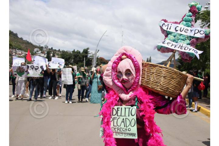 OAXACA, OAXACA, 28SEPTIEMBRE2022.- Defensoras de derechos humanos y de las mujeres, así como integrantes de diversas colectivas feministas de Oaxaca realizaron un convite para conmemorar el Día de Acción Global por un Aborto Legal y Seguro. Las manifestantes exigieron que se aplique la ley que desde septiembre de 2019 permite en Oaxaca la interrupción legal del embarazo hasta las 12 semanas. FOTO: CAROLINA JIMÉNEZ/CUARTOSCURO.COM