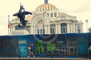CIUDAD DE MÉXICO. 28SEPTIEMBRE2022.- Vallas resguardan edificios para que no sean vandalizados por feministas que marchan esta tarde. FOTO: VICTORIA VALTIERRA/CUARTOSCURO.COM