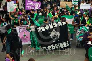 CIUDAD DE MÉXICO. 28SEPTIEMBRE2022.- Un centenar de mujeres feministas marcharon del Ángel de la Independencia al Zócalo de la Ciudad, demandan aborto legal y gratuito en todo el país. FOTO: VICTORIA VALTIERRA/CUARTOSCURO.COM
