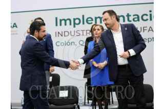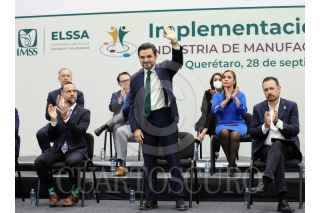 COLÓN, QUERÉTARO, 28SEPTIEMBRE2022.- El Instituto Mexicano del Seguro Social (IMSS), la Confederación de Cámaras Industriales (CONCAMIN) y empresas asociadas al sector automotriz anunciaron en el estado de Querétaro, la implementación del programa Entornos Laborales Seguros y Saludables (ELSSA) para la industria de manufactura automotriz y aeroespacial. En las instalaciones de la empresa Bombardier Aeropuerto, en el municipio de Colón, suscribieron el Acuerdo Nacional por la Salud, la Seguridad y el Bienestar de las Personas Trabajadoras el director general del IMSS, Zoé Robledo; la doctora Oliva López Arellano, en representación de la Jefa de Gobierno de la Ciudad de México, Claudia Sheinbaum Pardo; José Antonio Abugaber, presidente de CONCAMIN; Miguel Heberto Elizalde Lizárraga, presidente ejecutivo de la Asociación Nacional de Productores de Autobuses, Camiones y Tractocamiones; José Guillermo Zozaya Délano, presidente de la Asociación Mexicana de la Industria Automotriz; y como testigo de honor, el gobernador de Querétaro, Mauricio Kuri González. En el acto estuvo presente el gerente general de Bombardier, Martin Dugas. FOTO: IMSS/CUARTOSCURO.COM