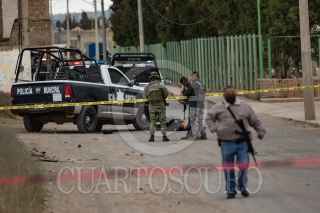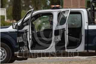 CALERA DE VICTOR ROSALES, ZACATECAS, 28SEPTIEMBRE2022.- Seis policías municipales, entre ellos, Rafael González Valdez, director de Seguridad Pública municipal, fueron asesinados cuando se encontraban realizando ejercicios en una Unidad Deportiva. Al rededor de las 09:30 hrs hombres armados abordo de un par de camionetas llegaron al lugar y atacaron a cuatro de los elementos policiacos que se encontraban de civil en el interior del Deportivo Miguel Moreno, al reporte de las detonaciones otros elementos policiacos, entre ellos el director policial, llegaron a realizar el apoyo, pero también fueron recibidos con armas largas lo que provoco que varios fueran heridos de gravedad. Además de los elementos abatidos, tres elementos más, dos hombres y una mujer fueron heridos de gravedad y fueron trasladados a un hospital. Zacatecas toma el primer lugar con el mayor numero de asesinatos a policías en lo que va del 2022, con al menos 44 elementos. FOTO: GENARO NATERA /CUARTOSCURO.COM